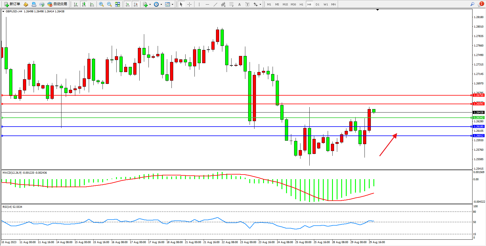英镑美元GBPUSD ——4小时K线图显示: