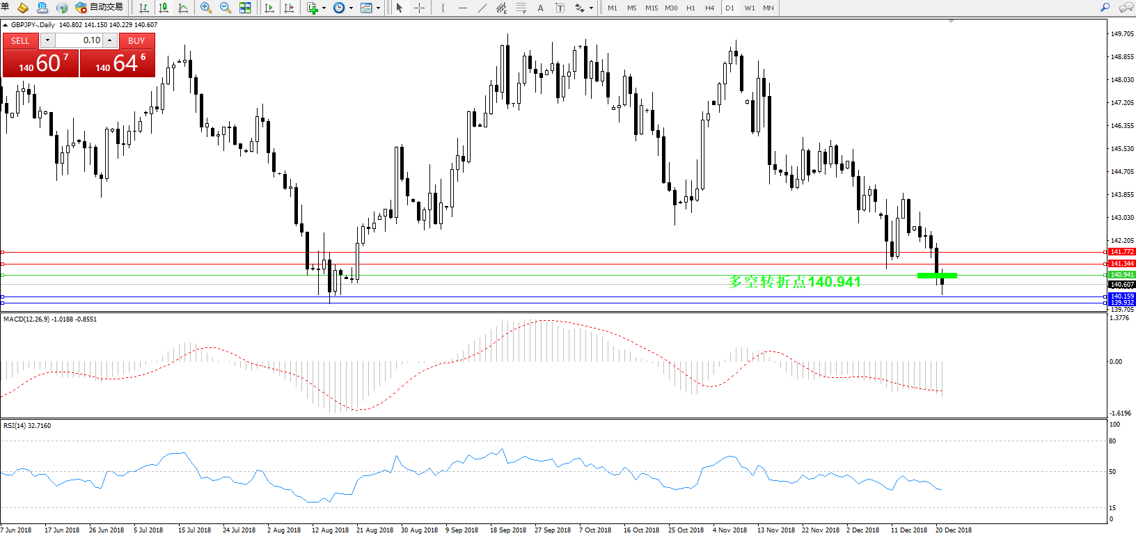 交易策略:140.941下方看跌,目标140.159139.932