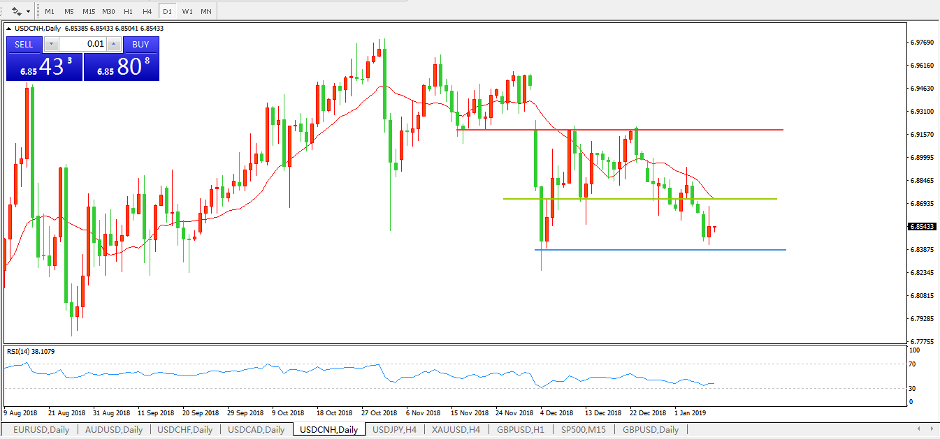 交易策略: 在6.8715之下,看跌,目标价位为6.8417,然后为 6.8242 。