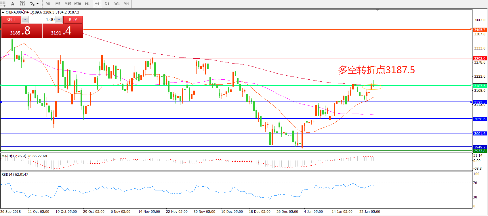 多空转折点:3187.50