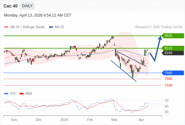 Cac 40 短线: 没有明显变化趋势。