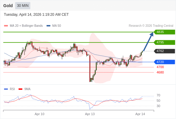 在 4720 之上,看涨,目标价位为 4795 ,然后为 4835 。