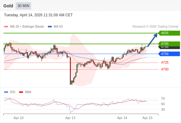 在 4758 之上,看涨,目标价位为 4795 ,然后为 4835 。
