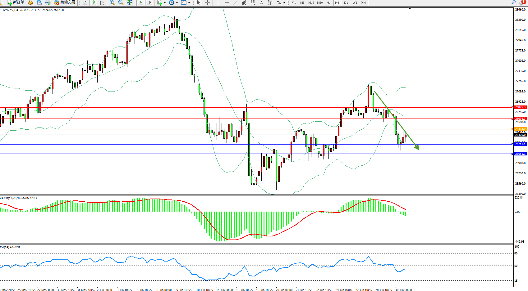 日经指数JPN225——4小时K线图显示: