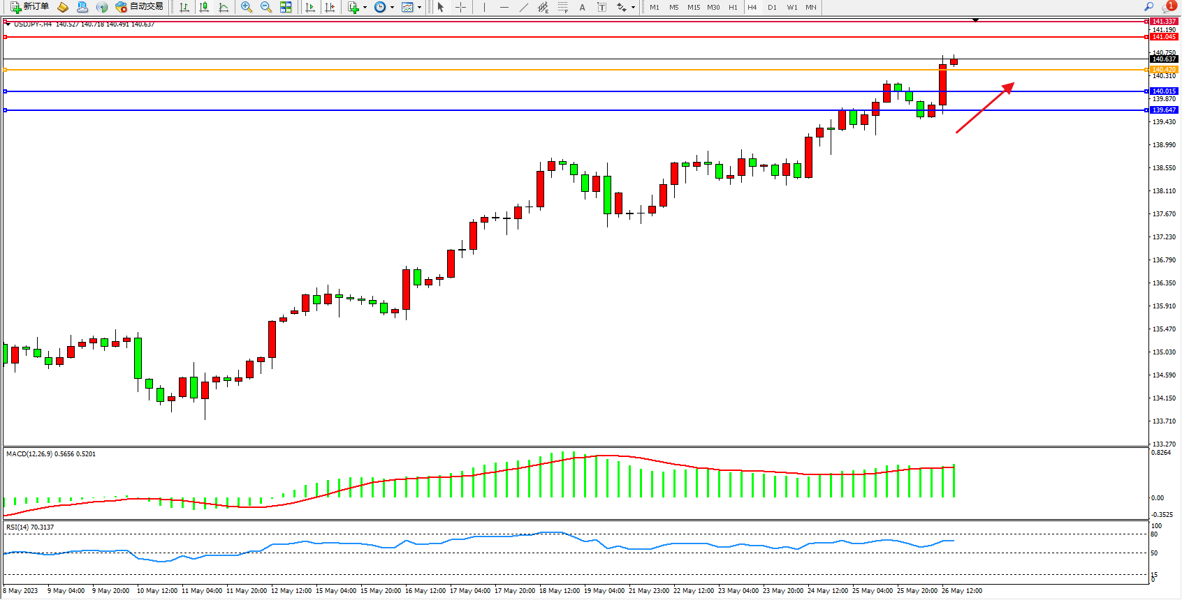 交易策略:140.420上方看涨,目标141.045  141.337