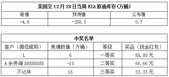 2019年1月第1次“EIA大竞猜活动的中奖结果已出,获奖信息如下:
